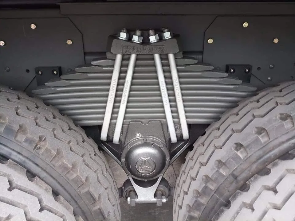 nhíp sau với thiết kế lên đến 12 lá với độ dày 25mm, rộng 90mm. với số lượng nhíp và bề dày như vậy thì chắc chắn rằng thì việc chiếc xe này có thể chịu tải trọng lên đến hơn 40 tấn