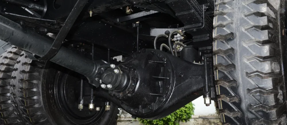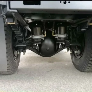 khung gầm được làm từ loại thép chuyên dụng chất lượng cao,thích nghi với mọi điều kiện thời tiết và địa hình xấu, xe sử dụng hệ thống treo trước dạng nhíp lá bán nguyệt ,nhíp trước kết hợp ống giảm chấn thủy lực giúp người ngồi trong cabin giảm được đáng kể tiếng ồn và độ rung từ phía sau khung gầm của xe , hệ thống treo sau với lá nhíp lớn , cỡ lốp 10.00-20 đồng bộ trước sau tạo sự cân bằng và tăng khả năng chịu tải cho xe.