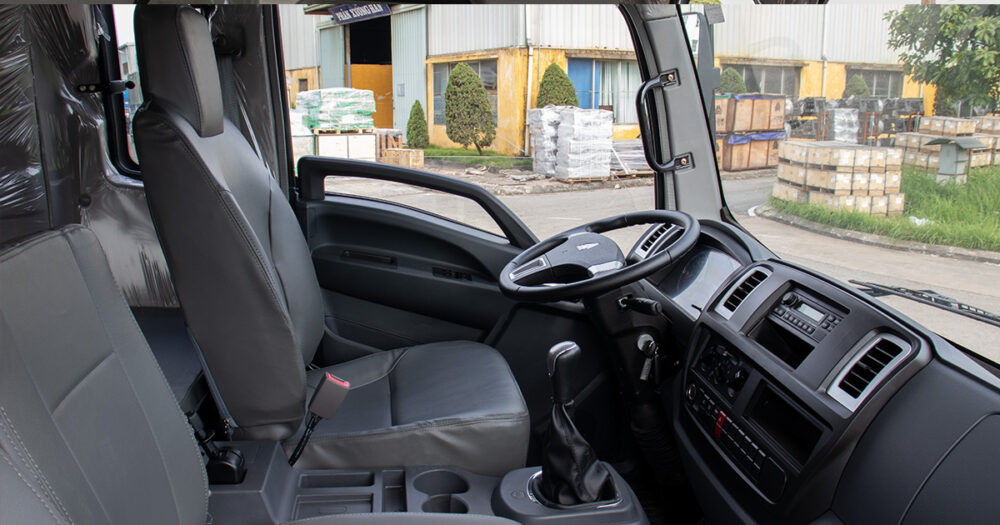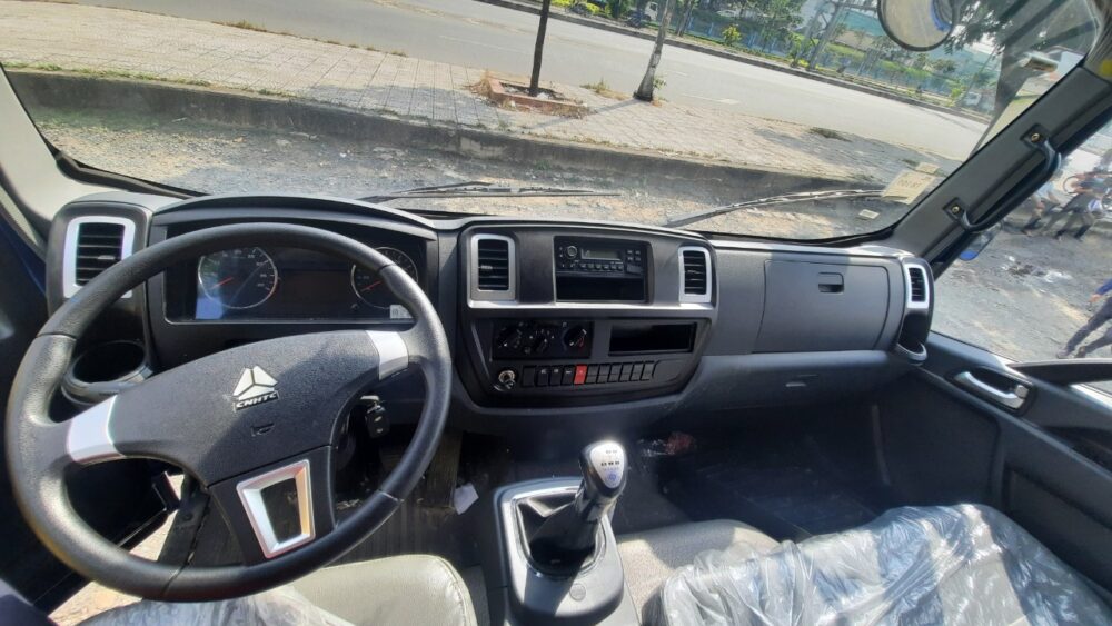 Với khoang cabin rộng rãi và thoải mái với thiết kế 3 chỗ ngồi, phía mặt taplo cabin được thiết kế đẹp mắt với trung tâm điều khiển bố trí linh hoạt và tiện lợi trong lúc thao tác, trang bị Radio, khe cắm usb nghe nhạc, Công tắc điều hoà….