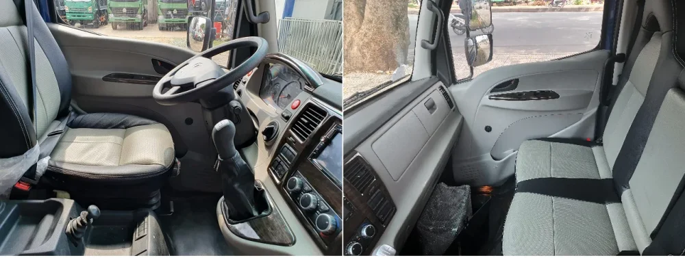 – cabin khá rộng rãi ghế ngồi chỉnh 3 hướng giúp thoải mái trong việc lái xe, mẫu ghế da phong cách thể thao với 3 chỗ ngồi rộng rãi