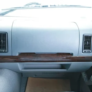 Nhìn từ ngoài vào thấy được cabin của xe rất rộng ,phần nhựa taplo thiết kế VIỀN VÂN GỖ có góc cạnh và màu xám rất đẹp mắt
