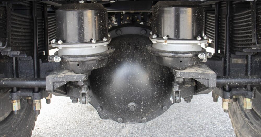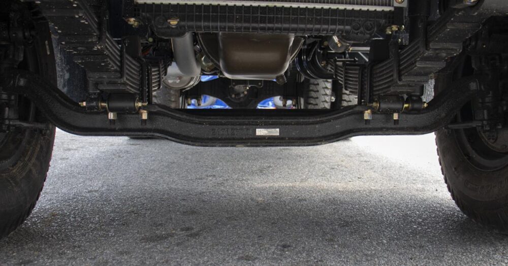 Hệ thống treo trước với 8 lá nhíp dày bản rộng và nhíp sau 2 tầng với nhíp chính 12 lá và nhíp phụ 8 lá bản rộng , dày cho tải hàng tốt hơn và cầu sau cho tải hàng lên đến 10 tấn, tỷ số truyền 6.33.