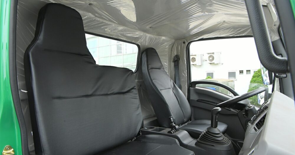 Thiết kế ghế ngồi bọc da đẹp mắt và sang trọng hơn đồng thời giúp cho các bác tài dễ dàng vệ sinh hơn, Với thiết kế 3 chỗ ngồi trên cabin rộng rãi. Kính bấm điện nâng kính hiện đại và tiện lợi rãnh tay cho bác tài