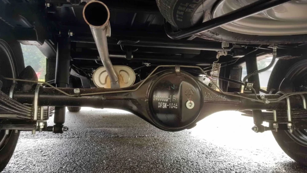 Chassi được đóng từ thép hợp kim có kết cấu dạng hộp chắc chắn nên khả năng chịu tải cao và có độ bên cao hơn với các khung dầm và đà ngang nhiều hơn với treo sau :phụ thuộc,nhíp lá với 5 lá nhíp tăng khả năng chịu tải tốt và hệ thống treo trước độc lập,lò xo trụ,thanh cân bằng giảm chấn thủy lực với hệ thống thanh răng-bánh răng/cơ khí có lực điện